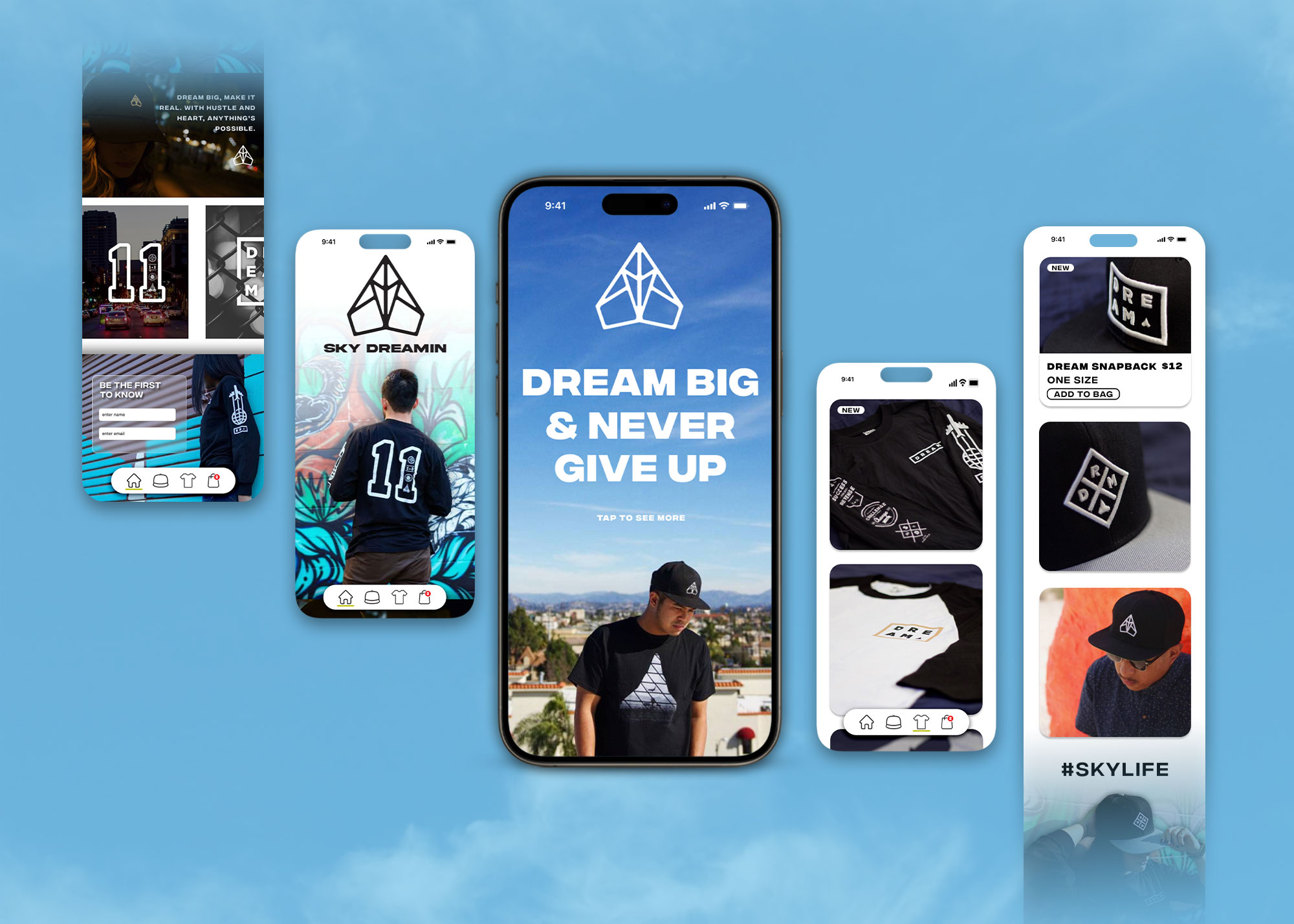 Alongside full-time roles, I also take on freelance work and building my own apparel brand, Sky Dreamin’, where I’ve explored screen printing, photography, and UX/UI design—blending hands-on creativity with entrepreneurial spirit.