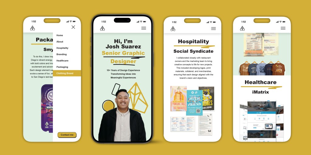 One standout project in my portfolio is a responsive website I designed entirely in Figma, which not only serves as a case study in UI/UX design but also functions as a platform to showcase my work in a more dynamic, interactive format. Rather than relying solely on static PDFs or traditional slideshows, I used Figma to transform selected portfolio pieces into a web-based experience—complete with responsive layouts for desktop, tablet, and mobile. This allowed me to present my work as users would actually experience it, adapting each design to feel natural on the platform it’s viewed from.